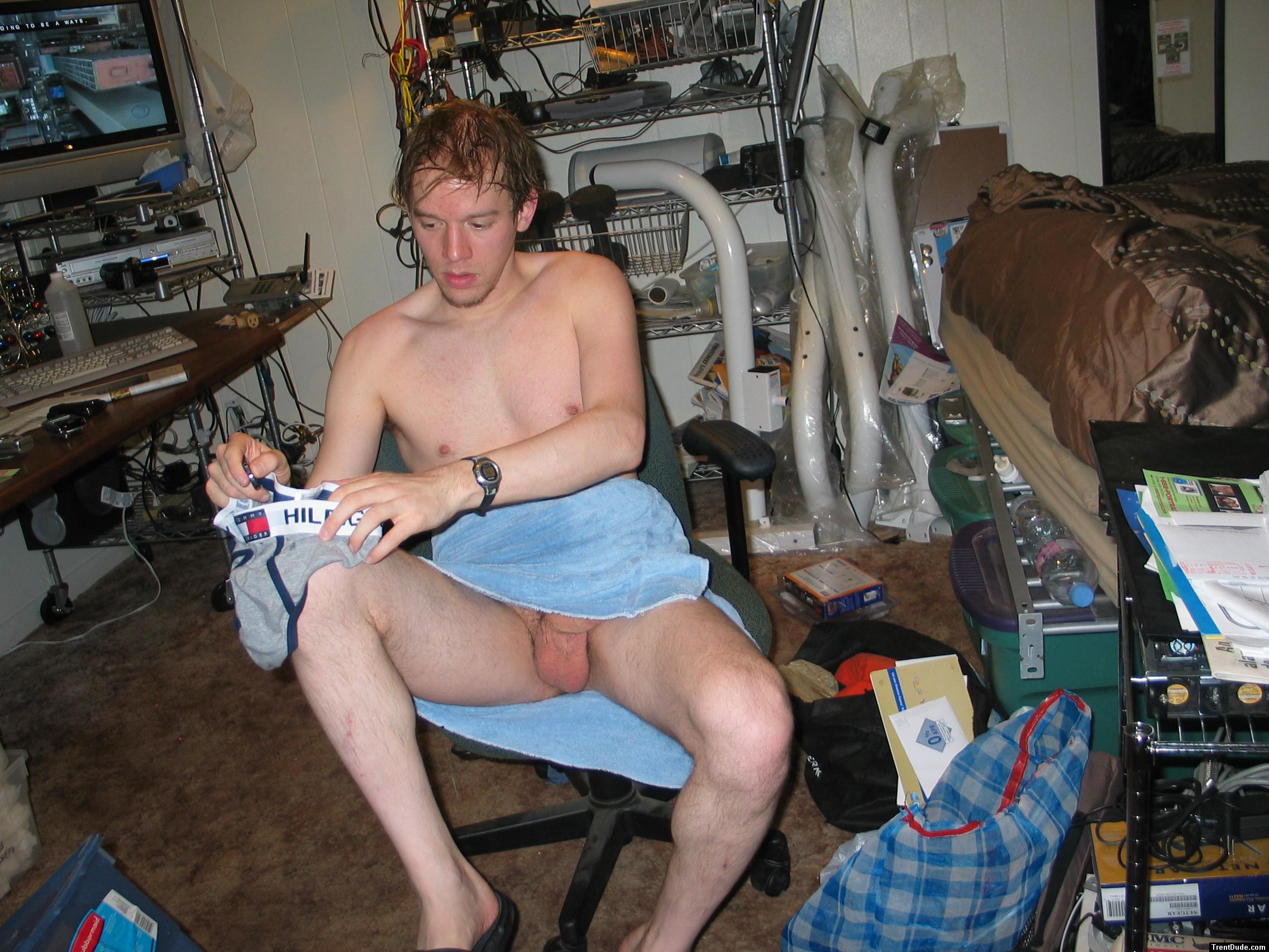 Putting on some Tommy Hilfiger briefs after a shower