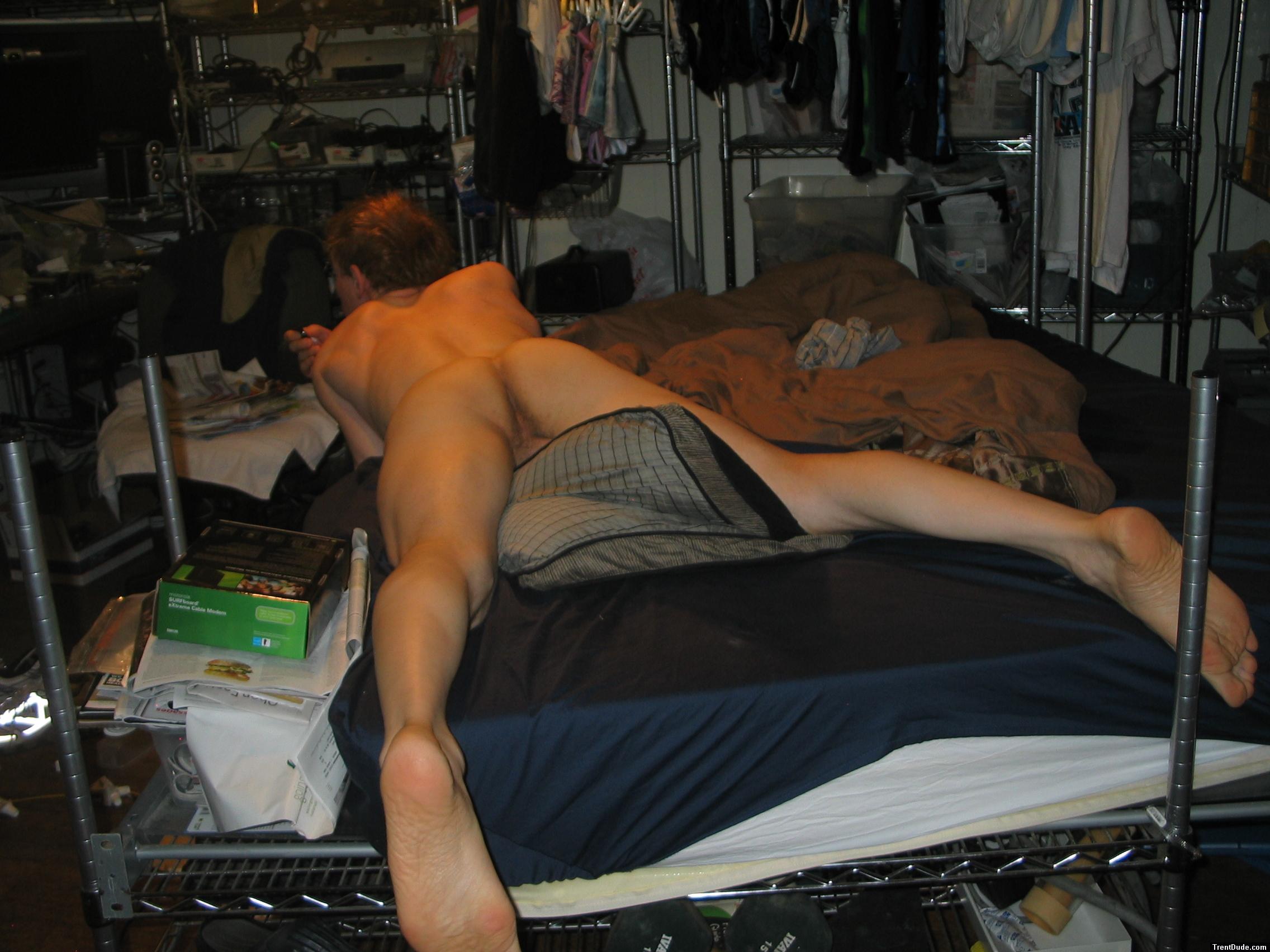 Butt/Feet in bed - Grey briefs