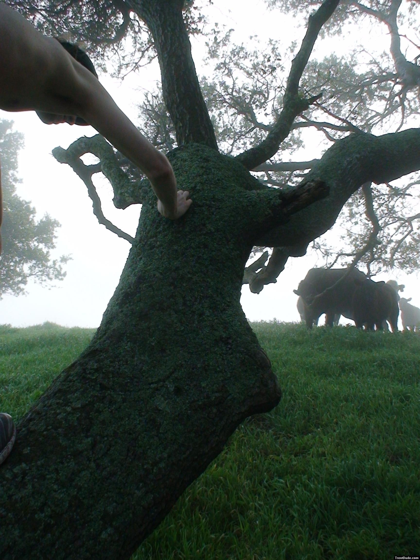 Climbing a tree with cows