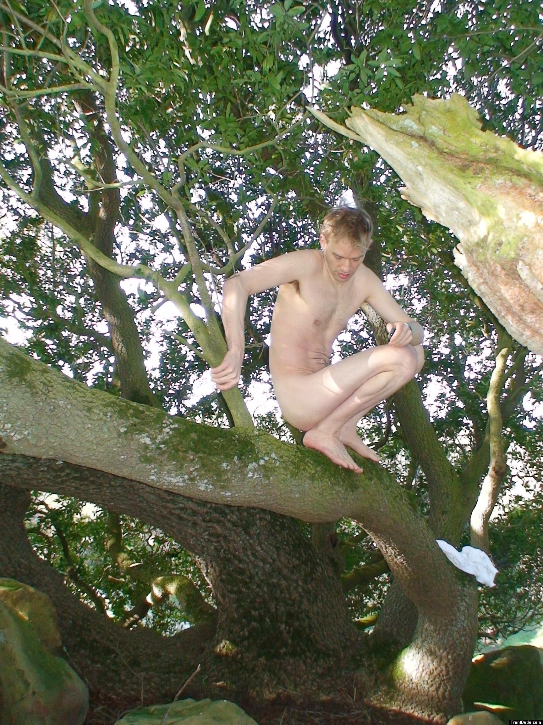 Nude guy in a tree