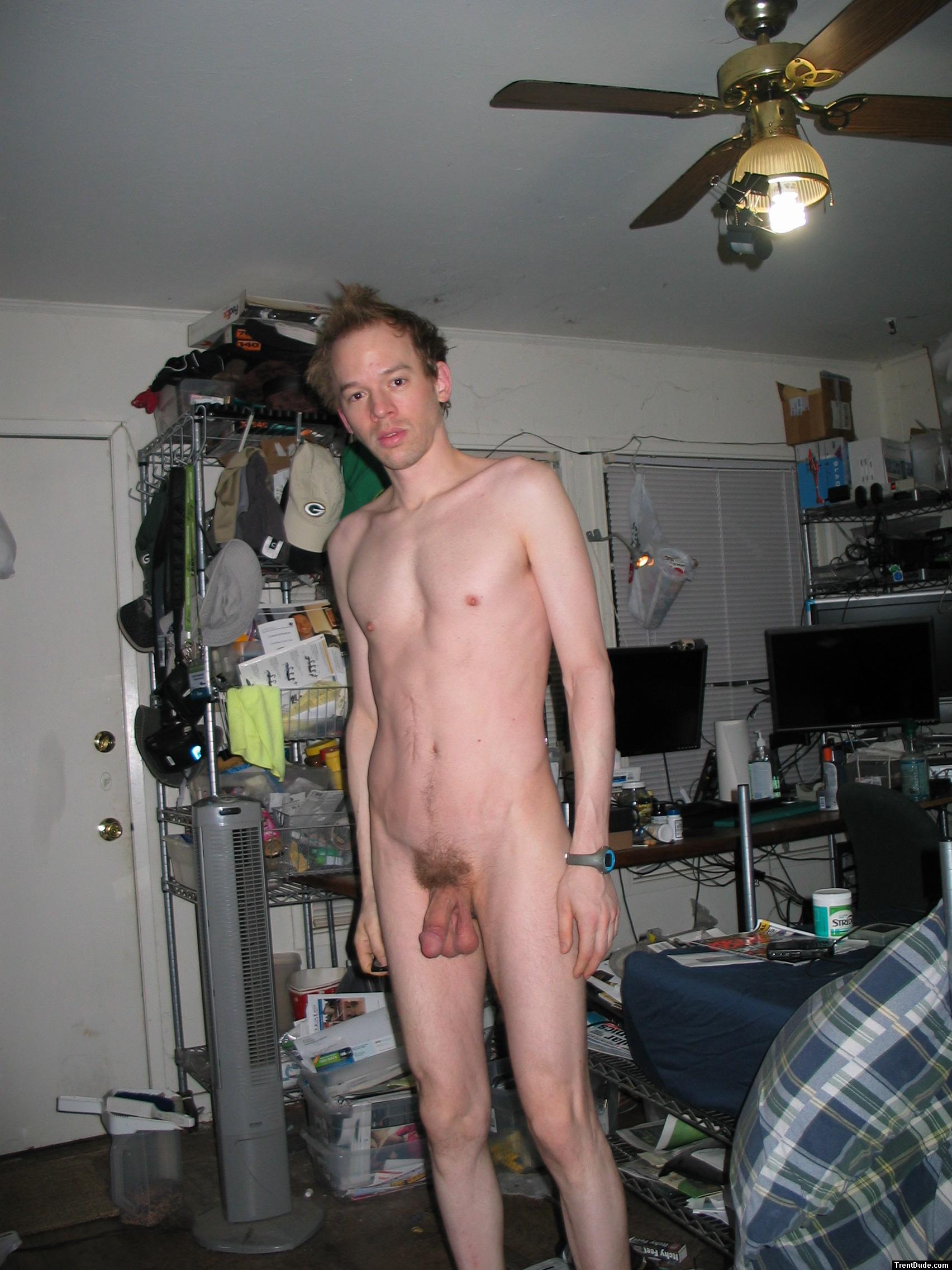 Standing nude, hanging scrotum (best)